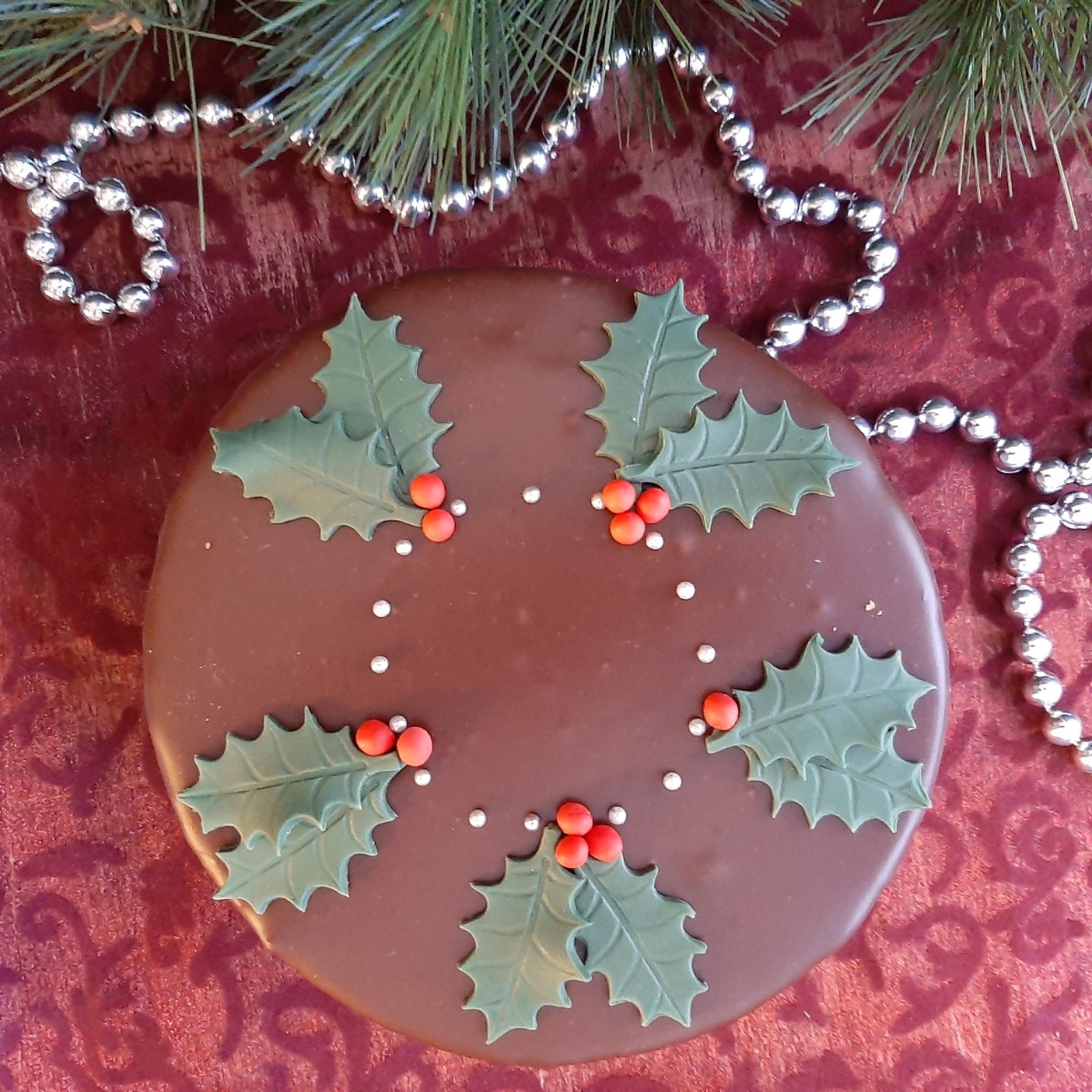 Onze bekende Sachertorte volgens opa Pragers recept gevuld met slagroom. Nu met een mooie kerstkrans van hulstblaadjes. Heerlijk bij de thee, maar ook als dessert.
