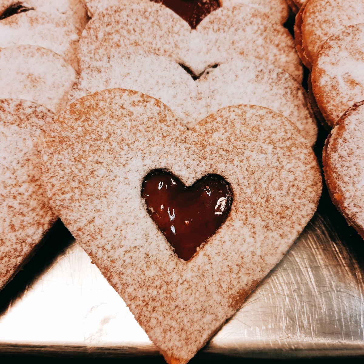 Speciaal voor Valentijn! Verras jouw liefste met een heerlijk hart. Het is een dubbele koek gemaakt van kruidig deeg met o.a. amandelen en gevuld met frambozenjam. Gemaakt volgens traditioneel linzerkoek-recept.