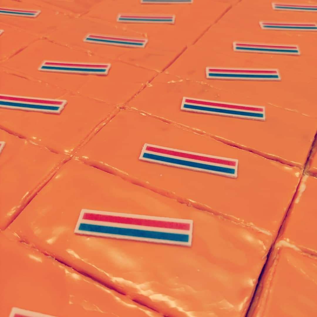 Oranje-tompouce voor een feestelijke Koningsdag of Prinsjesdag! Gevuld met heerlijke Zwitserse room.